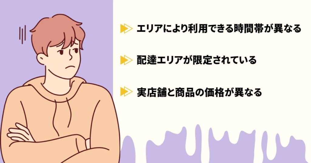 配達してほしいと思っても、店舗によって差がある点もデメリットといえるでしょう。
