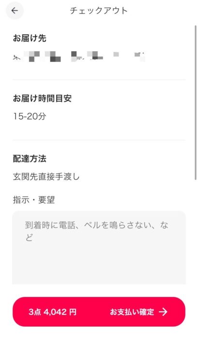 住所が間違っていないかも、しっかり確認して、お支払い確定をタップする。