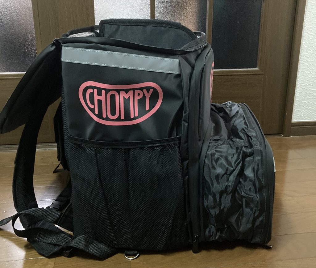Chompyのバックは、Uber eatsのバッグに比べると、非常に軽く、使い勝手も良いので、非常に評判の良いバックです!!