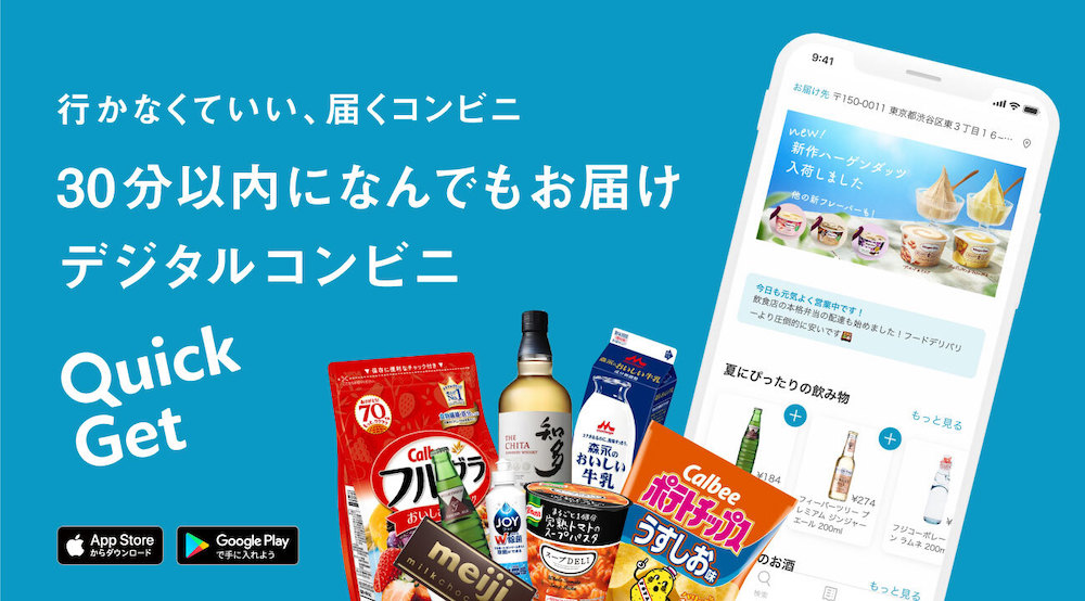 ゴーストストアを持つデリバリーサービス(都内で展開)、クイックゲットも、30分以内の近距離配送網を構築しています。