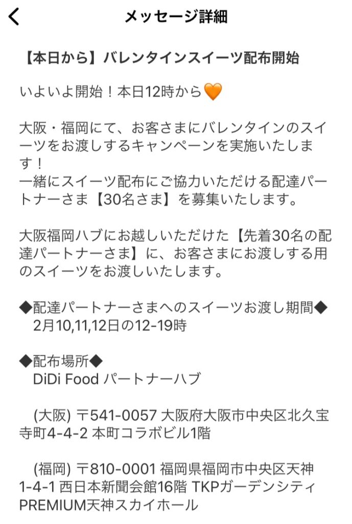 今後移転する可能性がありますので、配達員登録時はしっかりDiDiフードからのメールをご確認ください。