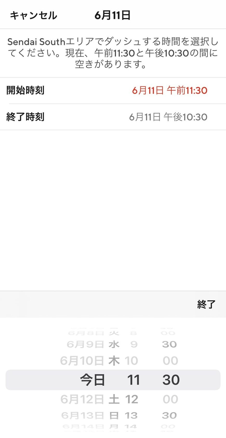 「開始時刻」もしくは「終了時刻」をタップして稼働したい時間に調整をしてください。