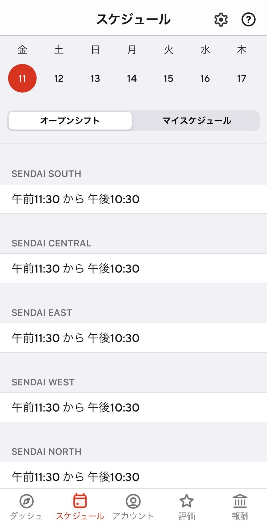 ①「オープンシフトから希望の日にちと場所を選ぶ」