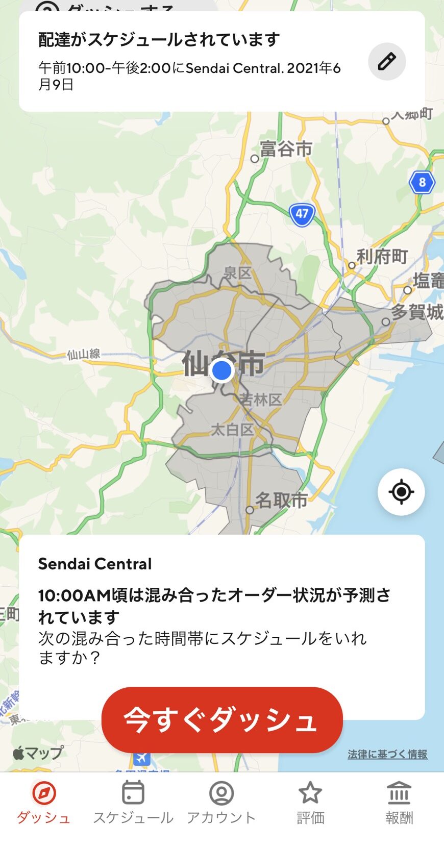 時間の調整ができたら、画面下部にある「ダッシュ予定を保存」をタップして、シフトの獲得は完了です。