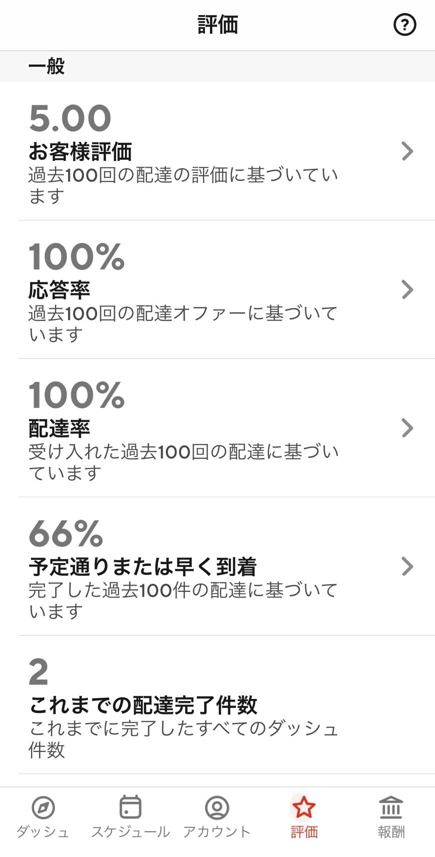 アプリ内の下部にある「評価」をタップすると自分の評価の詳細が確認できます。