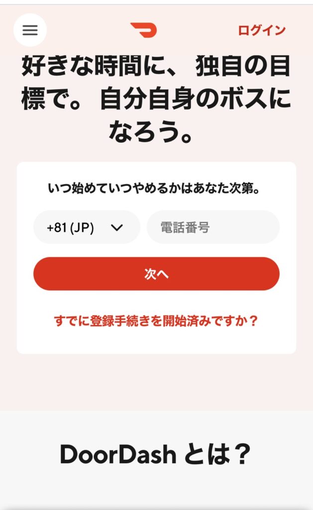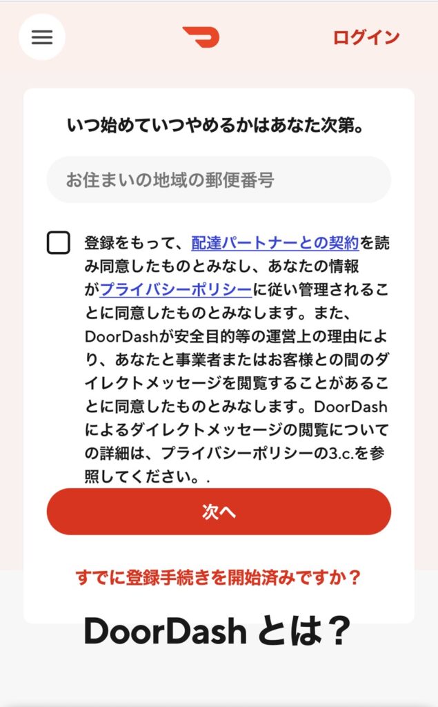 ドアダッシュ仙台の配達員の登録方法