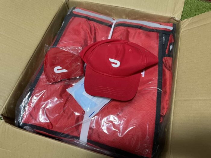 ドアダッシュの場合、現時点では、配達員登録した方、全員が無料でバッグとグッズを受け取ることができます!