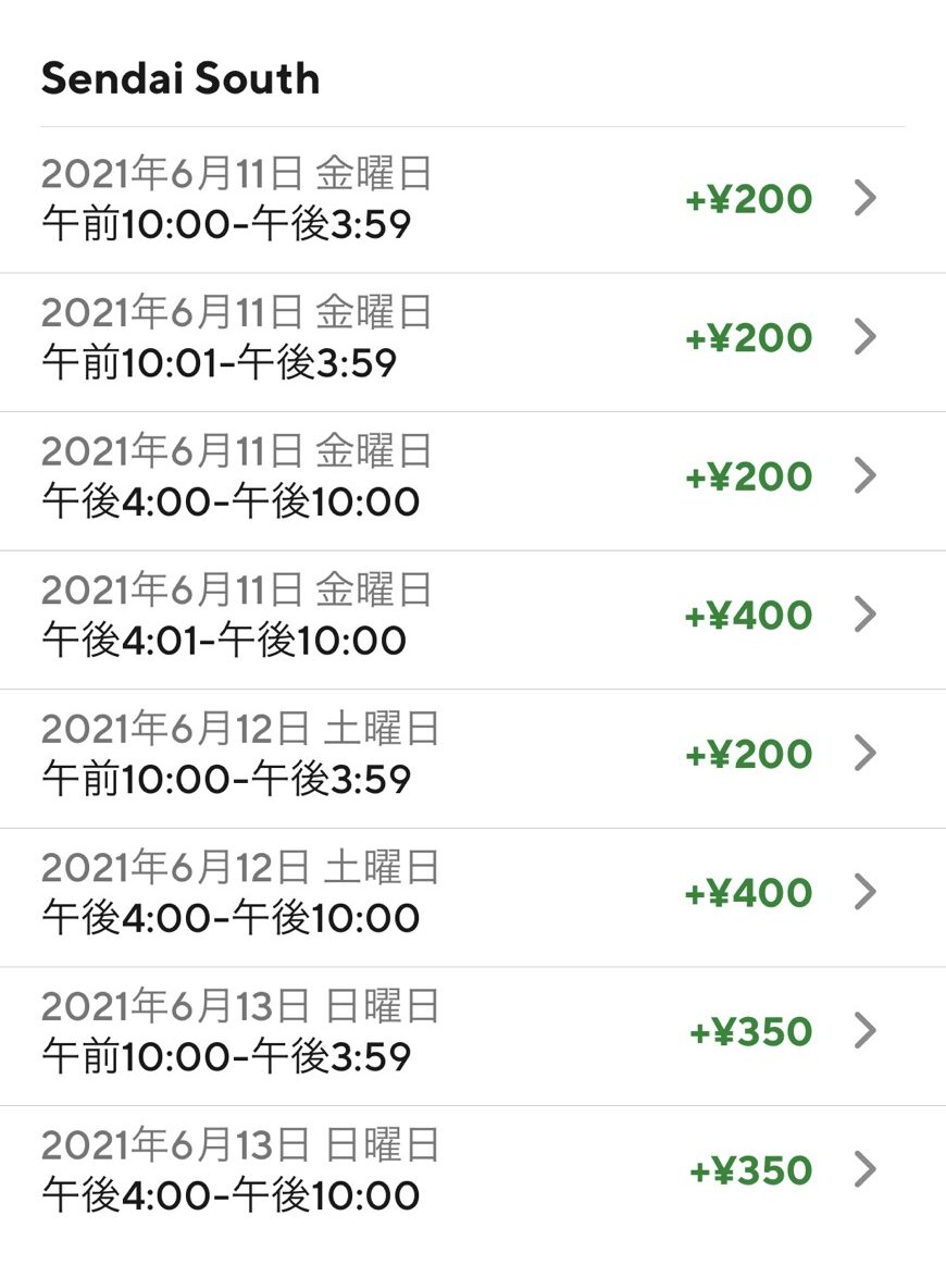 上記の「基本配達報酬」と「プロモーション」の合計金額が1件あたりの報酬(給料)となります。
