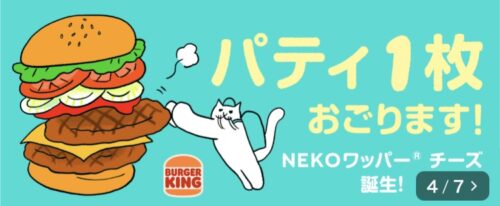 ワッパーチーズバーガーのFOODNEKO限定版なのですが、ワッパーチーズのお値段そのままで、お肉(パティ)がにゃんと2倍に!!