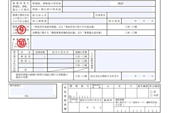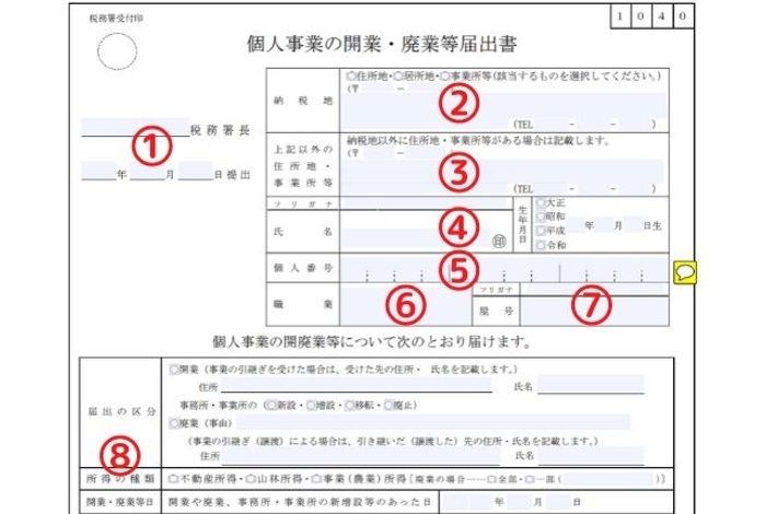 ⑧:届出の区分・所得の種類・開業、廃業等日
