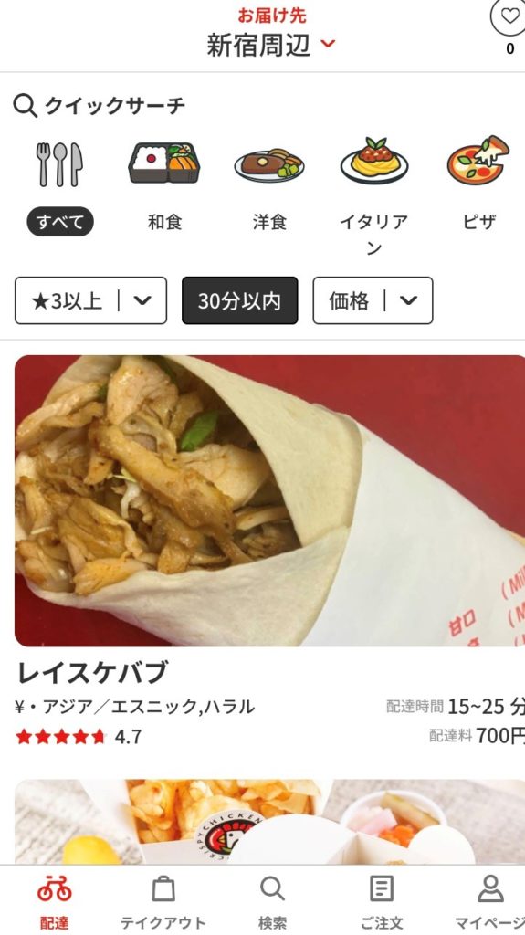つまり、小岩エリアオープン=小岩駅周辺の加盟店があるということではないのです!(30分圏内のエリアでは注文が可能!)