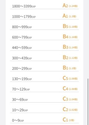 最低でもS1ランクに到達するためには、25,000EXPを8週間で達成する必要があります。