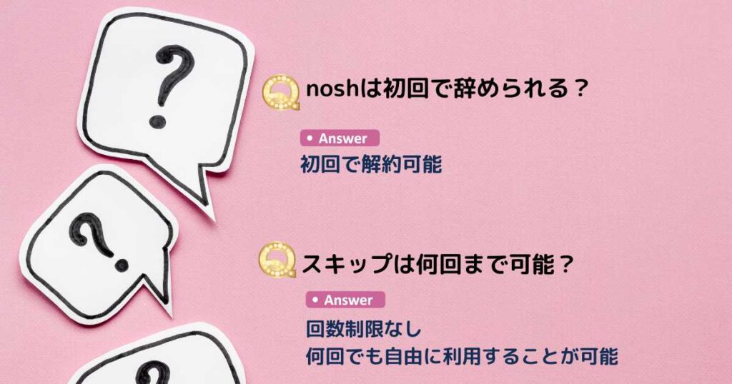 本記事では初めてnoshを試してみたい方のために、noshの初回限定のお得なクーポンや解約方法、さらにはスキップや停止機能についても詳しく解説します。