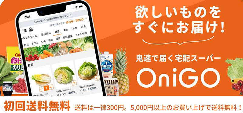 ONIGOは注文から最短40分で商品が届く宅配専門のネットスーパーです。