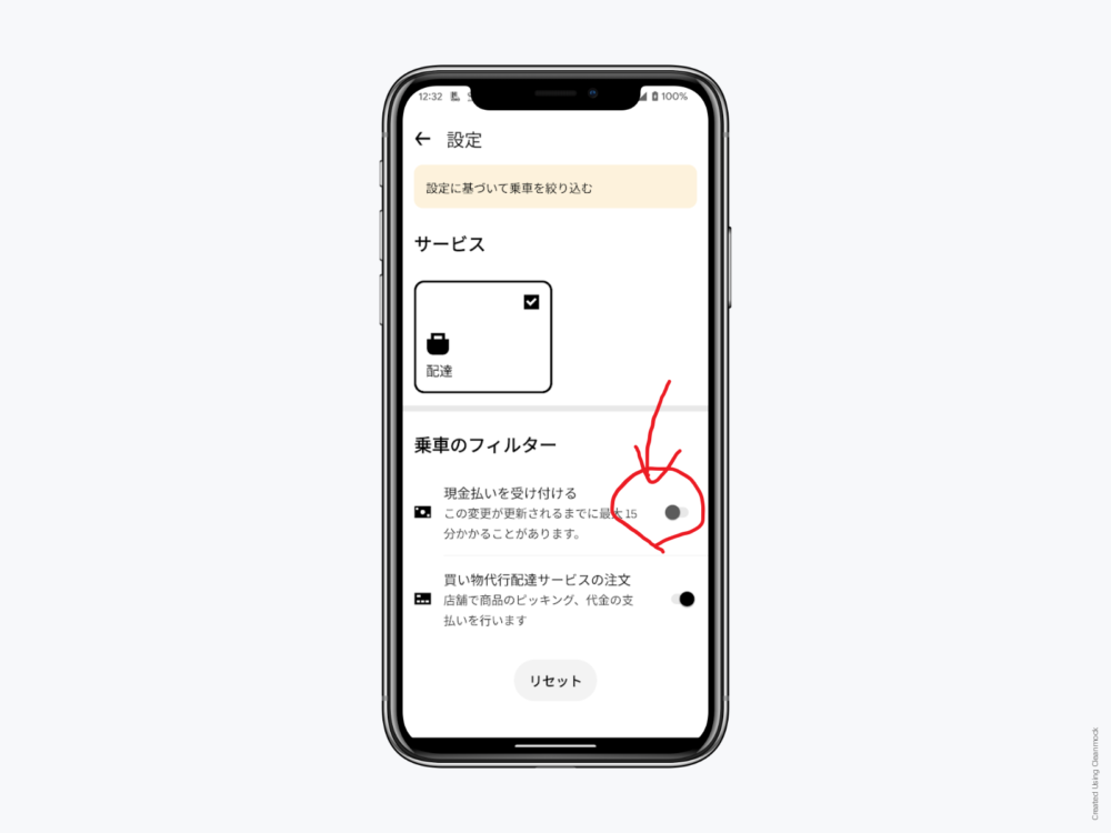 現金配達を受け付ける設定にすると、配達リクエストの最大数が増えるためなりやすくなる可能性があります。